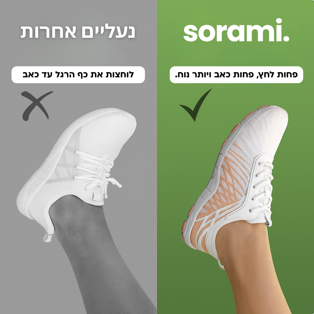 כשאתם נועלים את Sorami, אתם לא רק בוחרים בנעל – אתם בוחרים בבריאות, תנועה טבעית ובפתרון אמיתי שפותח במיוחד עבור אנשים שסובלים מבעיות ברגליים ורוצים לחזור לחיים חופשיים מכאב.
