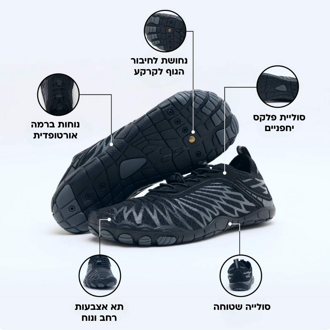 ✅ שיפור זרימת הדם – המגע הישיר של כף הרגל עם הקרקע בנעלי יחפנים מסייע להגברת זרימת הדם ברגליים. זה קריטי לא רק לבריאות כללית טובה יותר ולהפחתת עייפות – אלא גם לניהול תסמיני נוירופתיה.